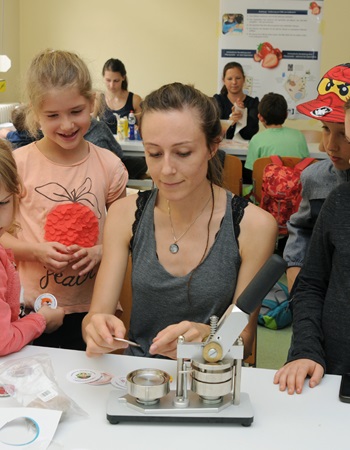 Impressions of the campus holiday for kids by the CRC 854. On July the 5th and 12th 2018, science-hungry young researchers discovered the world of immune cells. They had lots of fun competing in the immune cell quiz, making buttons, isolating DNA from strawberries and visiting a working research lab. PhD students and staff members of the SFB demonstrated the world of the immune system to the junior researchers.