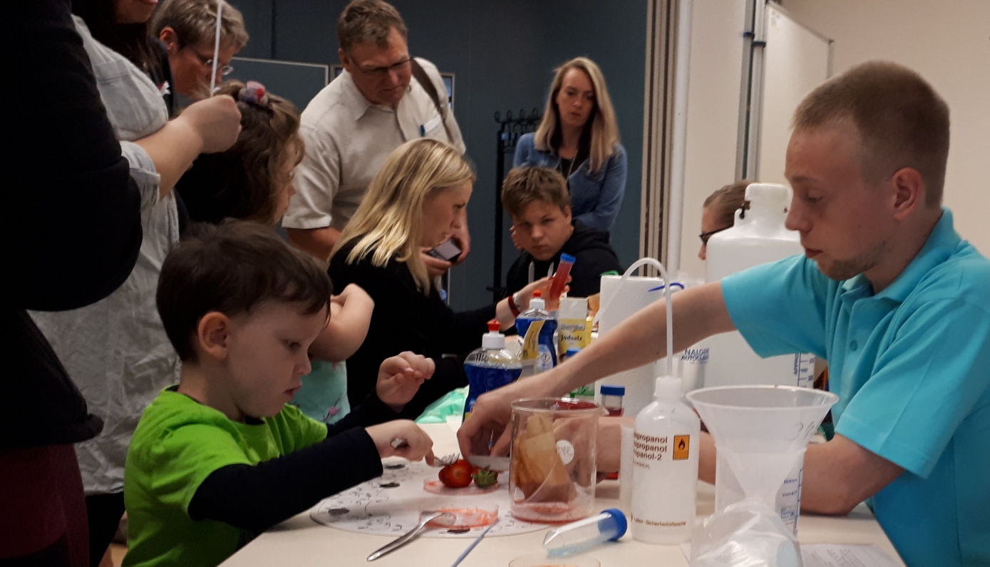 The 13th Long Night of Science took place on the 2nd of June 2018. The PhD students of the MGK 854 (Graduate College Module) taught the young researchers how to isolate DNA from strawberries under the motto "The Language of the Immune Cells". The children could then take home their own isolated strawberry DNA. The rush of visitors was unbroken again this year.