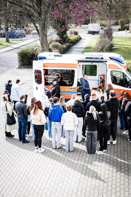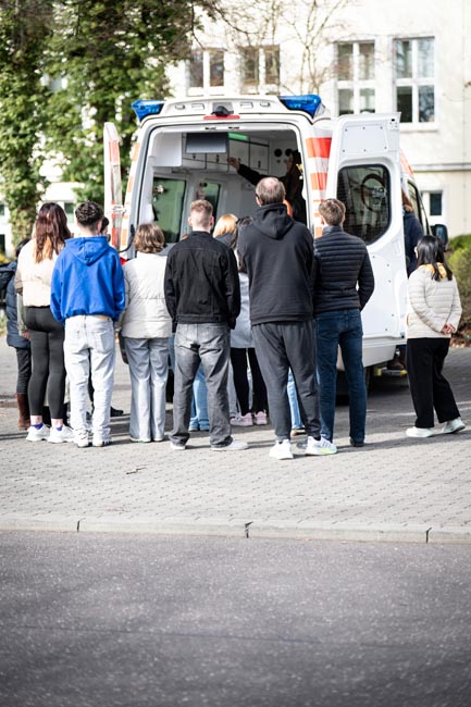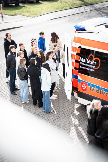 The schedule was deliberately structured: Tuesday focused on nursing, Wednesday on laboratory and radiology, and Thursday on anesthesia and the operating room. The week was complemented by a guest lecture from a paramedic with the Saxony-Anhalt Police. In addition, the trainees gained insights into hospice work as well as the Herzenswunsch ambulance, which fulfills the last wishes of seriously ill people.